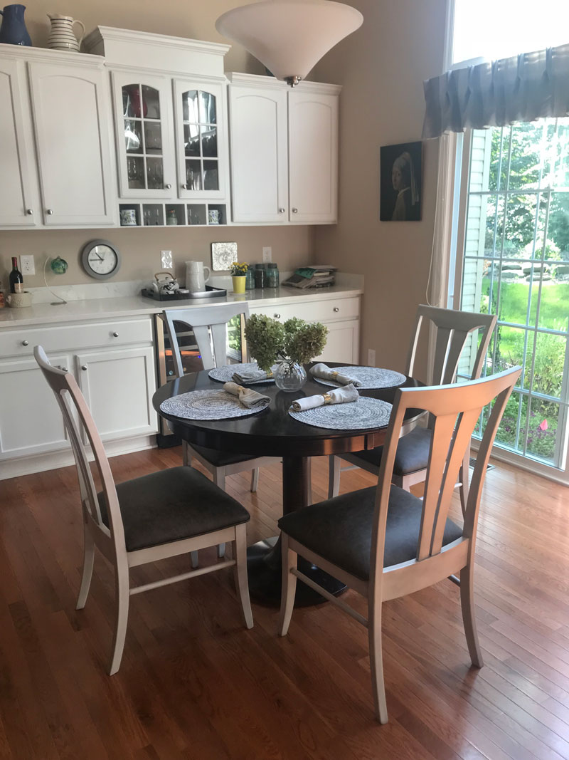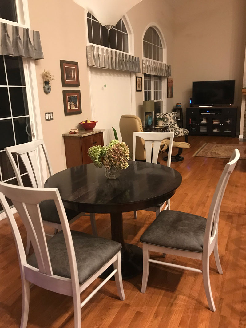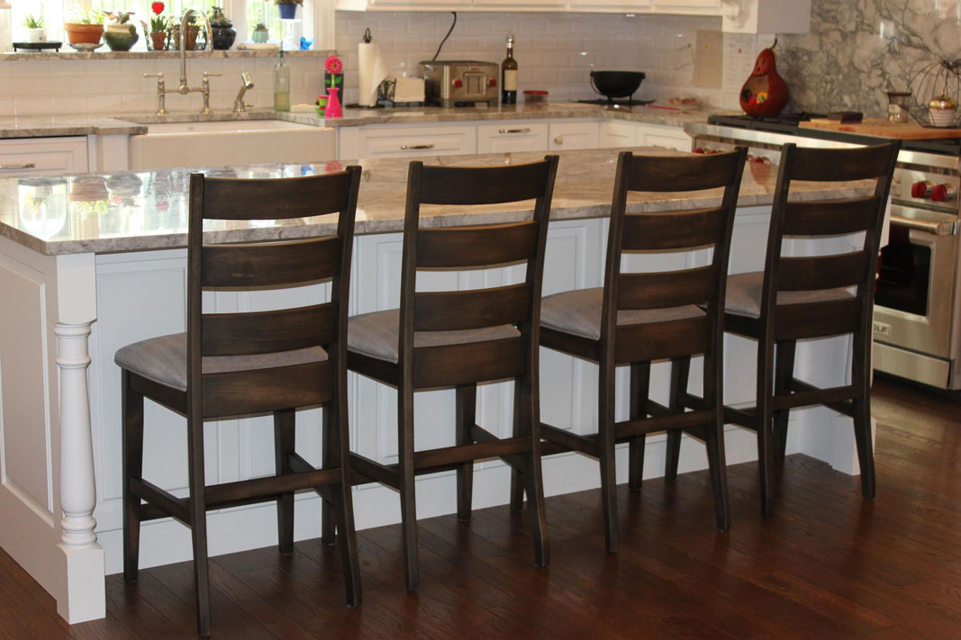 Chad’s family also was looking for beautiful counter-height chairs to match the rest of his dining area. Homestead created our 24” Hudson Counter Chairs in maple with a soft brown finish to tie the kitchen area together.